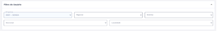 O filtro padrão possui cinco campos: Empresa, Regional, Distrital, Seccional e Localidade.