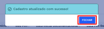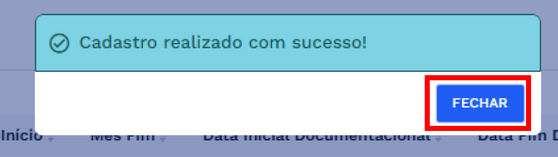 Para encerrar a mensagem, clique em “FECHAR” e retorne à tela de cadastro.