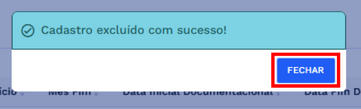 Ao confirmar, o sistema fará todas as validações necessárias, caso não exista nenhum impedimento para que a exclusão seja realizada, será exibida a caixa de diálogo de sucesso.