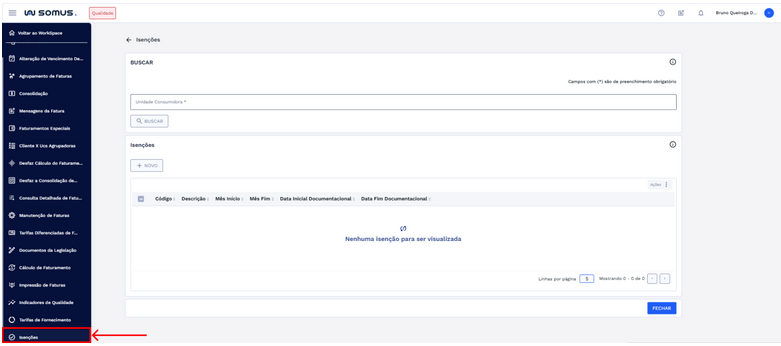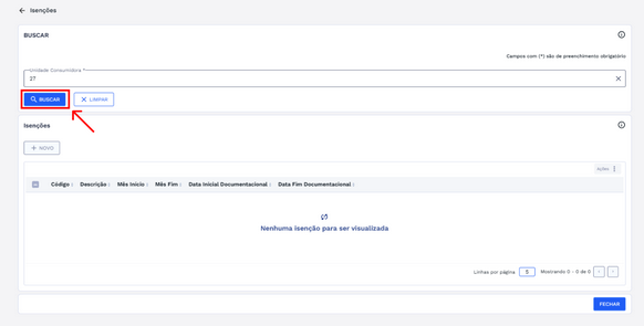 Buscar: Pesquisa as isenções conforme a UC aplicada.