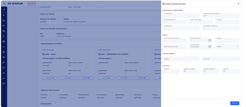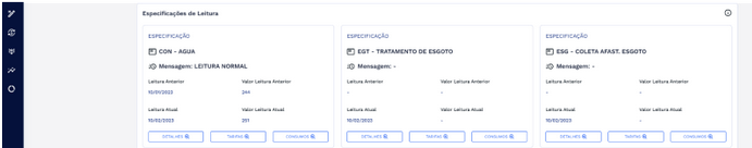 - Especificações de Leitura: Na seção de Especificações de Leitura, você pode visualizar todas as especificações disponíveis para a fatura selecionada.
