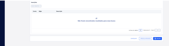 Ao clicar no botão "Novo Registro", uma nova linha será exibida na tabela para a inclusão de uma nova taxa. Para concluir o registro, preencha os seguintes campos: