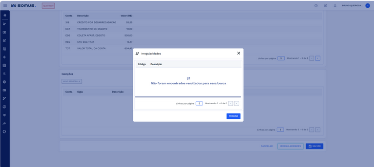 - Na caixa de diálogo, estará disponível o botão “Fechar”, que, ao ser clicado, permitirá que o usuário retorne à tela principal.