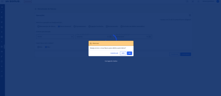 - Sim: A fatura será incluída no débito automático, e o sistema redirecionará para a tela de manutenção de fatura.