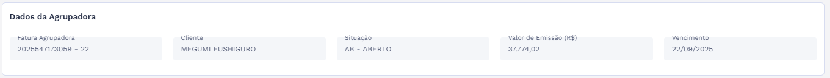 | Consultar dados da fatura agrupadora | |